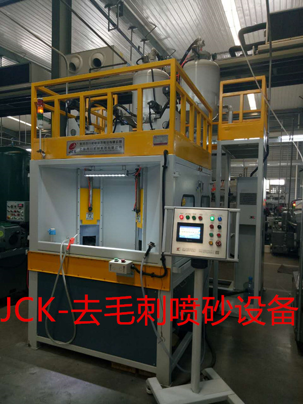 吉川科技JCK系列壓入式液體噴砂去毛刺設備顛覆了壓入式液體噴砂機的行業零空白,目前也是國內唯一一家研發生產出壓入式液體噴砂去毛刺設備廠家。流體磨料清理速度可達到每秒180米,通過特殊射流噴嘴可以去除機械零部件切削、磨削后形狀邊緣和內孔交叉孔毛刺,替代毛刷和熱法去毛刺等工藝。